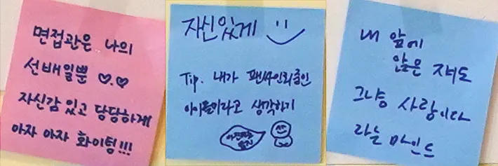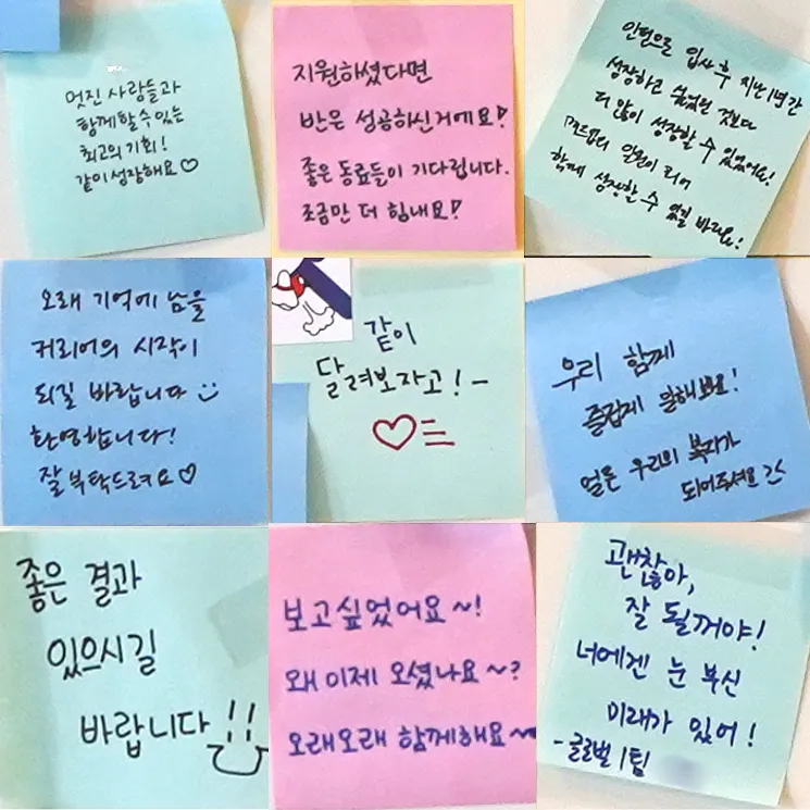 무엇보다 여운이 오래 남았던 포스트잇들은 응원의 메시지들이었습니다. 새로운 시작을 앞둔 사람들에게 가장 필요한 건 따스한 응원의 한 마디라는 것에 모두가 공감해주신 게 아닌가 싶어요.