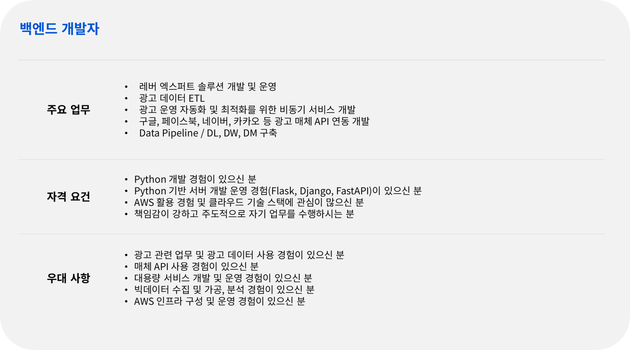 * 채용 절차에서 검토 과정에 따라 추가적인 인터뷰가 진행 될 수 있습니다.