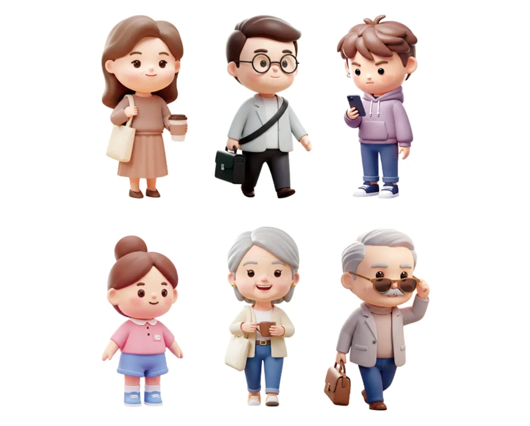 위 처럼 AI를 활용해 가족 단위의 캐릭터 세트를 만들고 하기 세부 요소를 모두 통일했습니다.