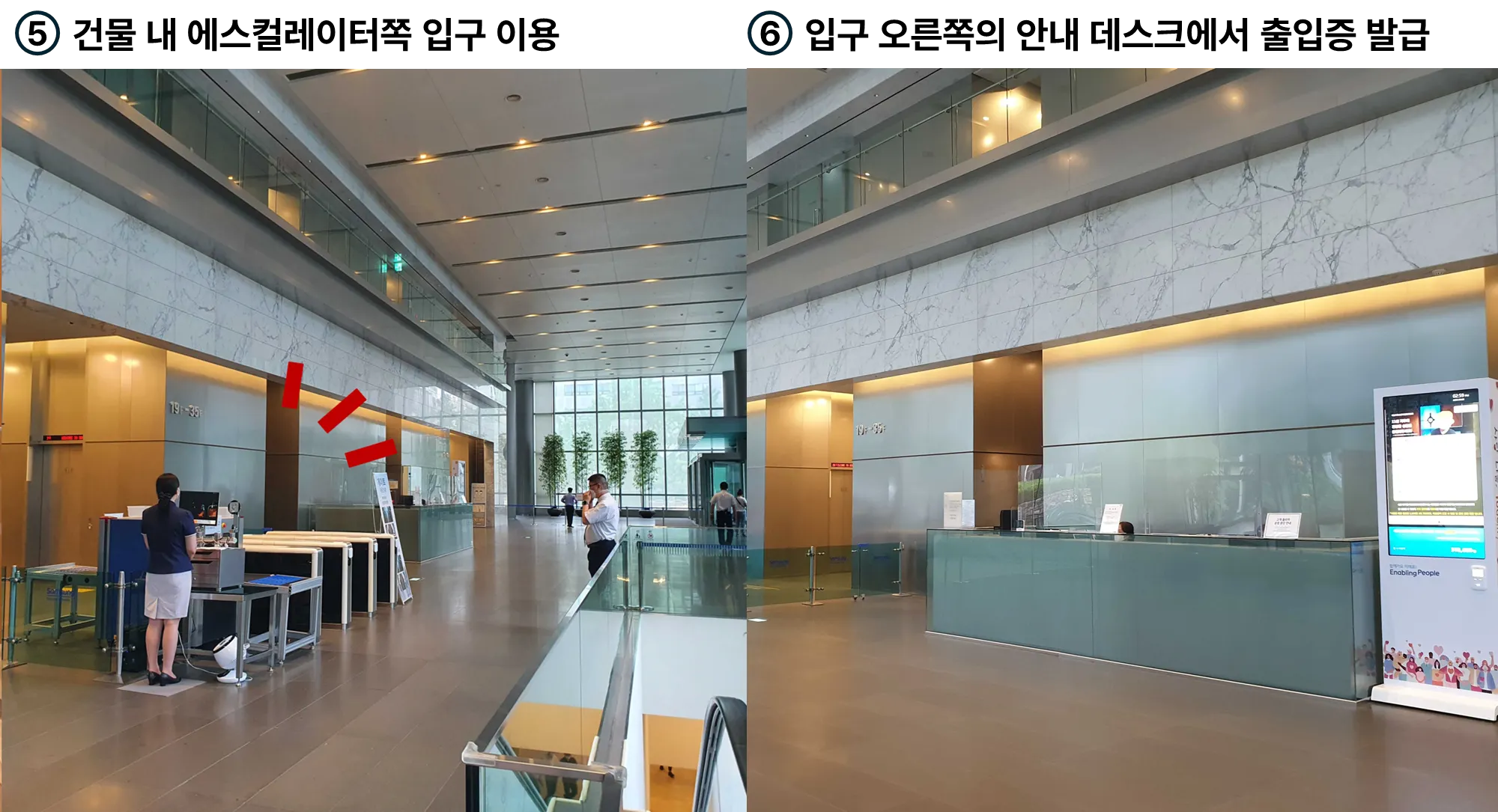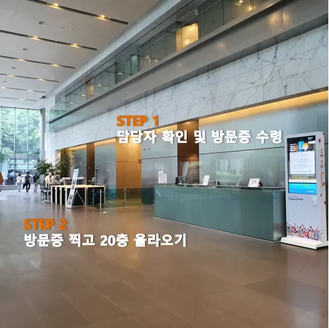 2. 안내데스크에서 명부 작성 후 출입증 받기