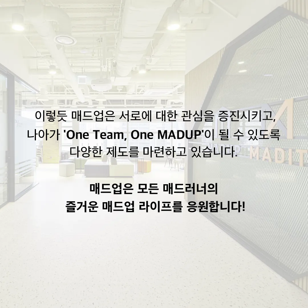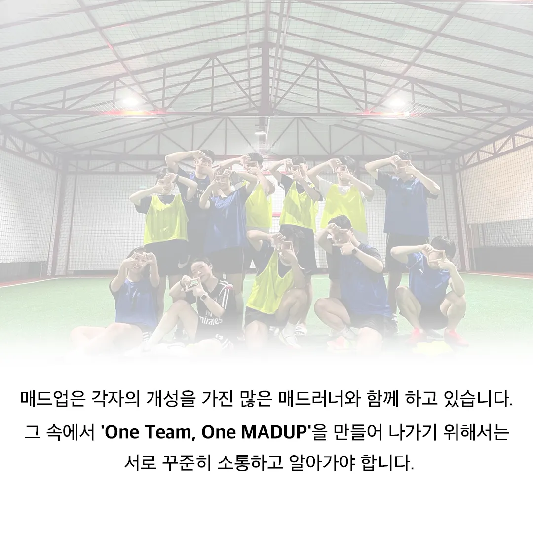 One Team, One MADUP! 우리 모두는 하나의 팀, 하나의 매드업입니다.