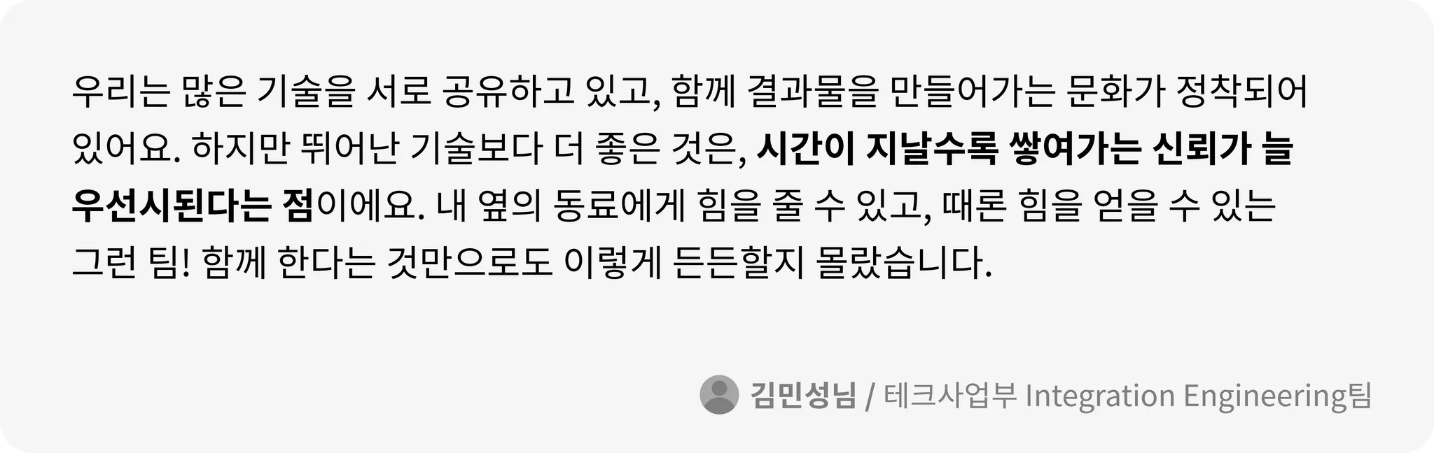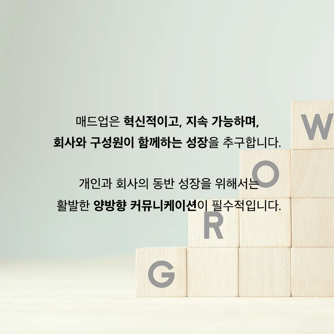 우리는 혁신적이고, 지속 가능하며, 회사와 구성원이 함께하는 성장을 추구합니다.